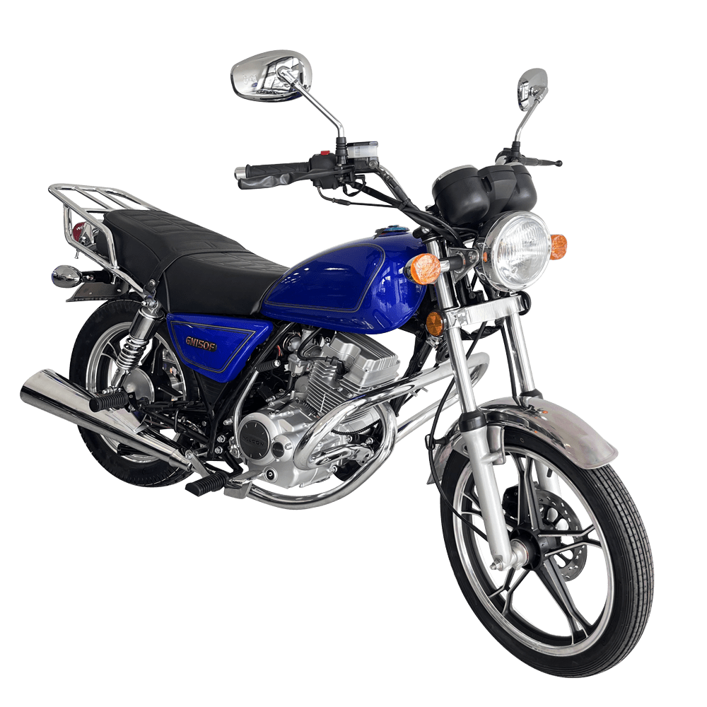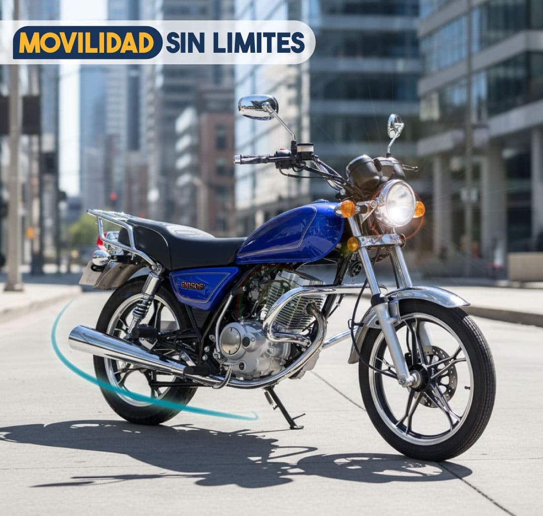 La motocicleta GN150F Promax destaca por su equilibrio entre rendimiento, eficiencia y un diseño pensado para la ciudad. Equipa un motor de 150 cc, monocilíndrico de 4 tiempos, refrigerado por aire y con encendido C.D.I, complementado por arranque eléctrico. Su chasis, liviano pero sólido, permite una carga de hasta 150 kg, mientras que los neumáticos 2.75-18 en la parte delantera y 110/90-16 en la trasera, junto con una suspensión calibrada para mayor confort, garantizan una conducción estable y suave. Una opción ideal tanto para la movilidad diaria como para recorridos recreativos.